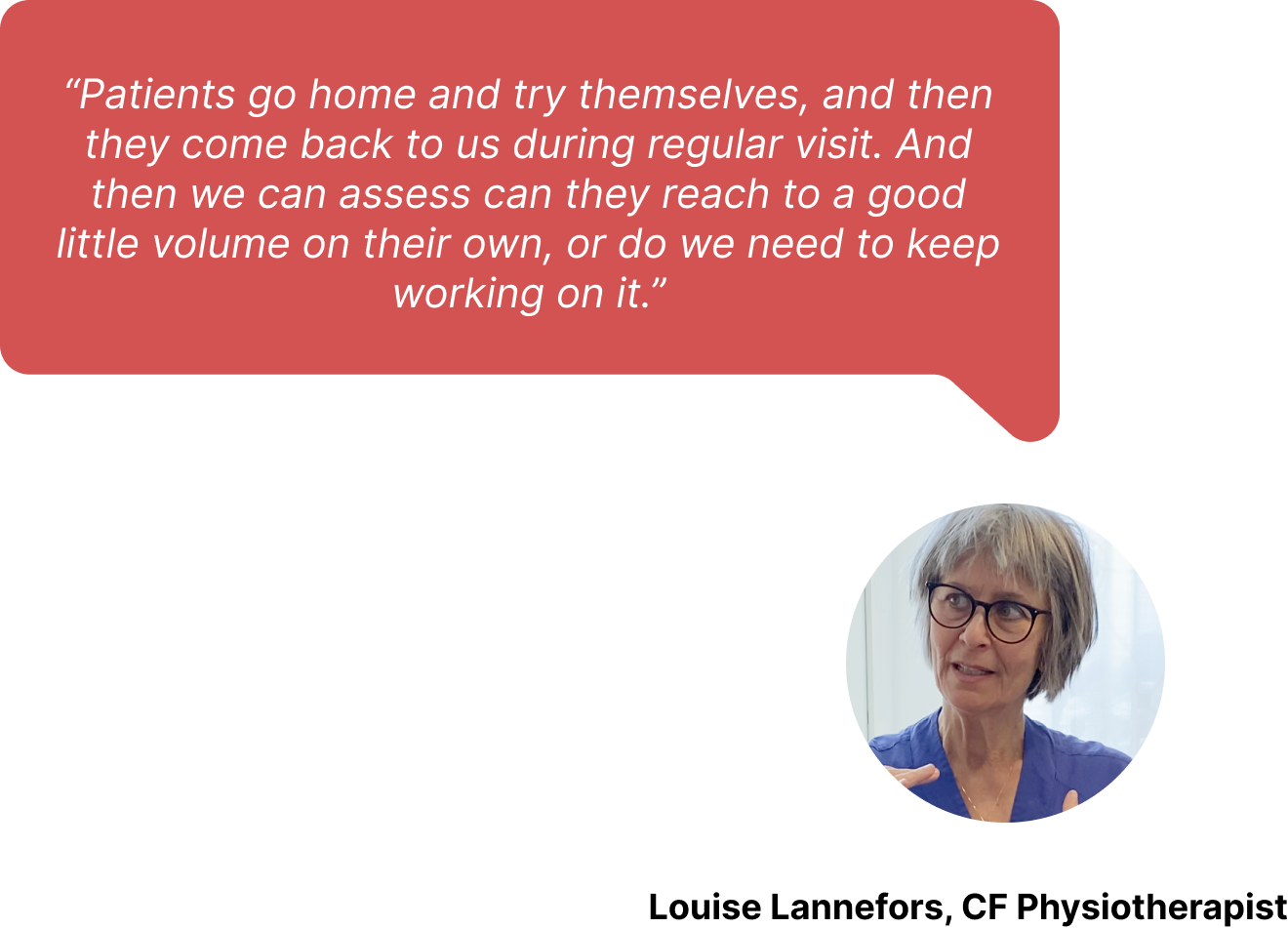 The patient's ACT needs to follow a physiologic strategy. The most difficult part is the second step, blowing as much air out of the lungs as possible to achieve RV (residual volume). Today, there are no visual measures at home to let patients know how well they are doing with ACT and whether they are achieving RV.